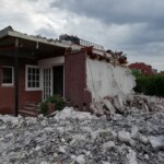 Ganz einfach war es nicht, aber nun sieht man erst, wie groß das Grundstück ist. Die fachgerechte Entsorgung von einigen asbesthaltigen Bauteilen hat den Abbruch leider verzögert. Hier wirkte sich besonders der enge Kreis der Fachfirmen als Terminproblem aus. Dann ging es aber ganz schnell. Leider konnten wir nur den Keller des Altbaus erhalten. Die Entkernung des Erdgeschosses erwies sich nach Öffnen der Decken als zu gefährlich. Auch der eintönige Betonteich im Gartengrundstück ist Geschichte, hier gab es nicht einmal einen flachen Uferbereich, sondern nur überkragende Platten.